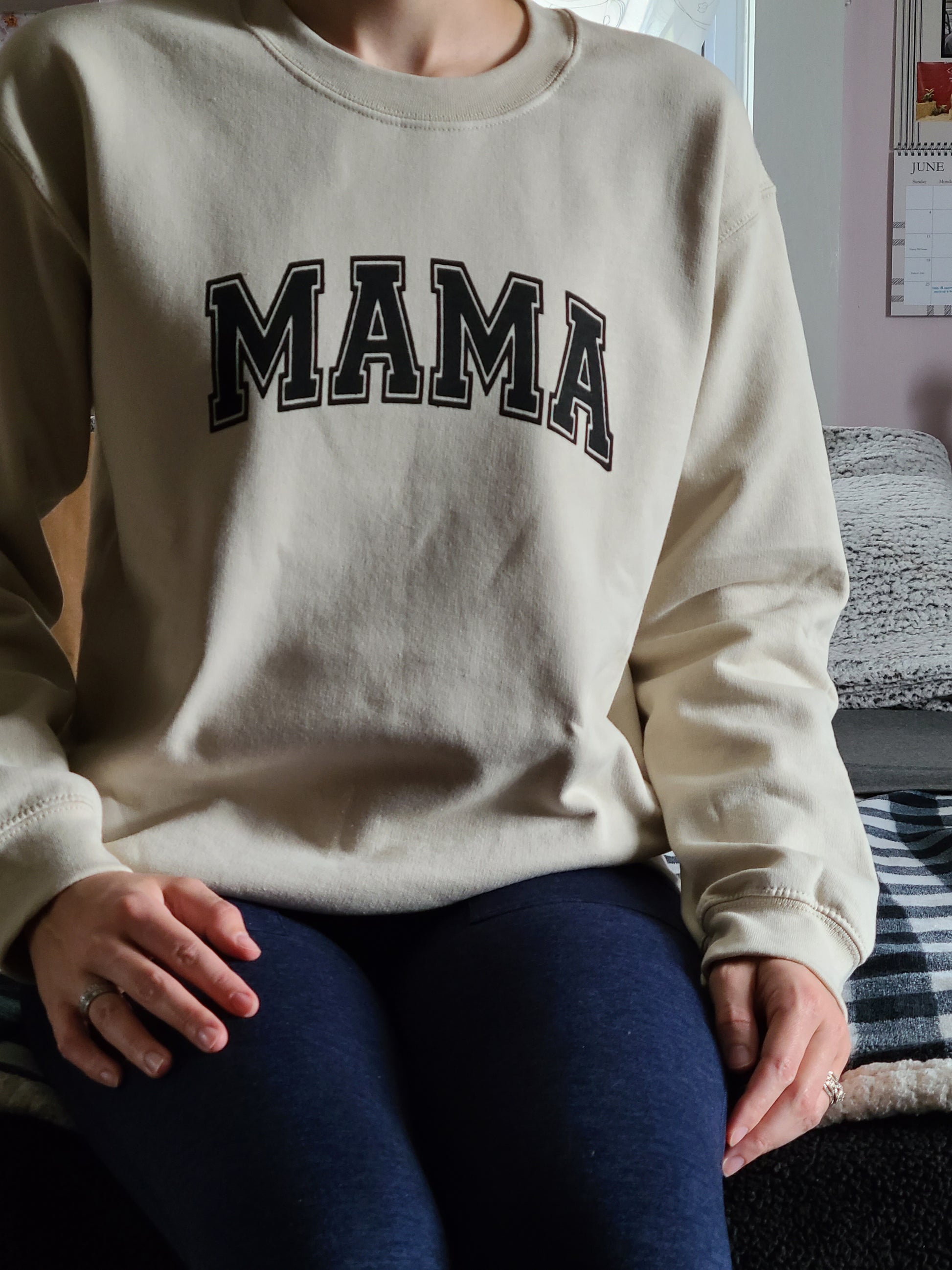 Here is the perfect, cozy crew sweatshirt for that special mama. Different color of sweatshirts available and the option between black and white design.